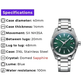 PHYLIDA New Aqua Automatic Watch Solid SS Sapphire Crystal NH35A Mechanical Wristwatch 100WR Diver