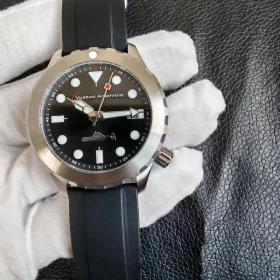 WISHDOIT New NH34 Men’s Sports Automatic Mechanical GMT Sapphire Stainless Steel Waterproof 15 ATM With Rubber Strap