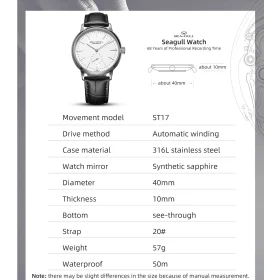 Seagull New Business Watch Men’s Mechanical Wristwatches 50m Waterproof Leather Valentine Male Watches relogio masculino 6075