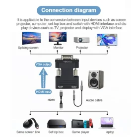 HDMI to VGA Converter Adapter With Audio Cable HD 1080P VGA to HDMI-compatible Adapter Converter For PC Laptop to HDTV Projector