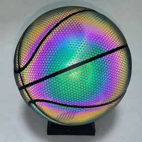Luminous Basketball Ball Holographic Reflective Lighted Flash Ball PU Wear-Resistant Glowing Basketball Night Sports Game
