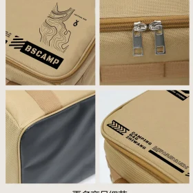 Large Capacity Outdoor Camping Storage Bag – Ground Nail Tool Bag with Picnic Cookware Utensils Kit Gas Canister Organizer