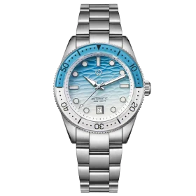 WISHDOIT Men’s Automatic Dive Watch With Ocean Blue And White Ripple Dial 8215 Movement Sapphire Glass Mirror