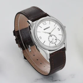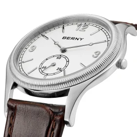 BERNY Watches for Men Ultra-Thin Simple Easy Read 38mm Quartz Man Watch Leather Strap Couple Men’s Stylish Dress Wristwatch