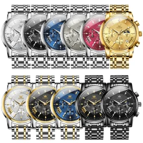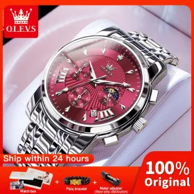 OLEVS 2892 Mens Watch Original Business Quartz Watch Moon Phase Multifunctional Chronograph Watches For Men With Box Reloj New
