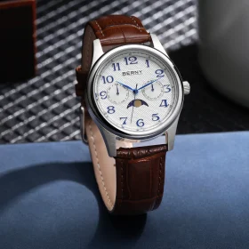 BERNY Watches for Men Moon Phase Quartz Men’s Watch Day Date Calendar Easy Read Vintage Stylish Business Dress Wristwatch