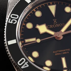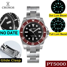 Cronos Sub Diver Men Watch No Date PT5000 Brushed Bracelet Ceramic Bezel 200 meters Water Resistant Glideclasp