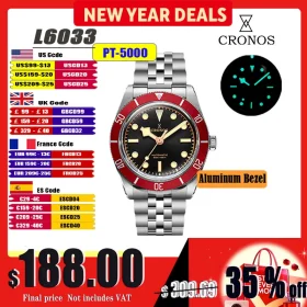 Cronos Luxury Men Watch 39mm Automatic PT5000 SW200 Wristwatches Sapphire 10ATM See-through Back L6028M