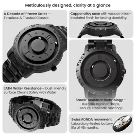 EUTOUR watches male magnetic watches quartz waterproof leather steel stainless steel bracelet watches black dial fashion sports