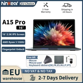 Ninkear A15 Pro Laptop 16″ IPS 2.5K FHD AMD Ryzen 5 5500U Notebook 16G DDR4+1TB 54Wh Battery Windows 11 PRO Office Computer