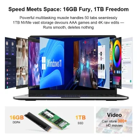 15.6″ Ultra-Thin Laptop 16GB RAM 1TB SSD Intel Core 8500Y Notebook 1920*1080 HD Display Office Study Computer PC Windows 11 Pro