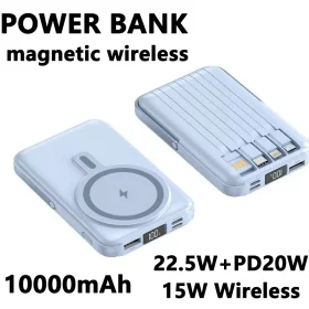 Wireless magnetic power bank 22.5W super fast charging 10000mAh suitable for watches, mobile power banks, lightweight and thin