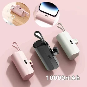 10000mAh Mini Capsule Power Bank Plug and Play External Battery Power Bank Phone Charger for Samsung iPhone