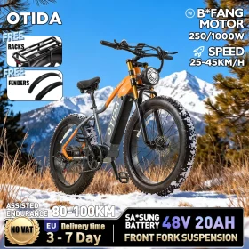 OTIDA New RX50 1000W50KM/H Mountain Electric Bicycle 48V20AH Lithium Battery 26 Inch Fatbike Electric Bike For Adults Motorcycle