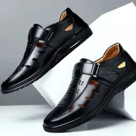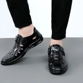 Men Sandal Summer Hollow Non-slip Casual Pu Leather Sandals for Men Fashion Lighted Breathable Beach Slippers Classic Dad Sandal