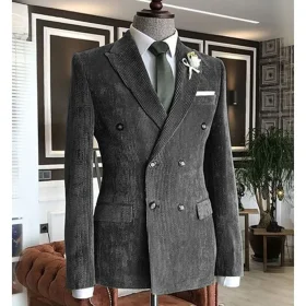 Men’s Corduroy Suit Jacket Double Breasted Suit Collar Jacket Casual Fashion Work Wear Blazers Man Formal Jackets Man Jacket